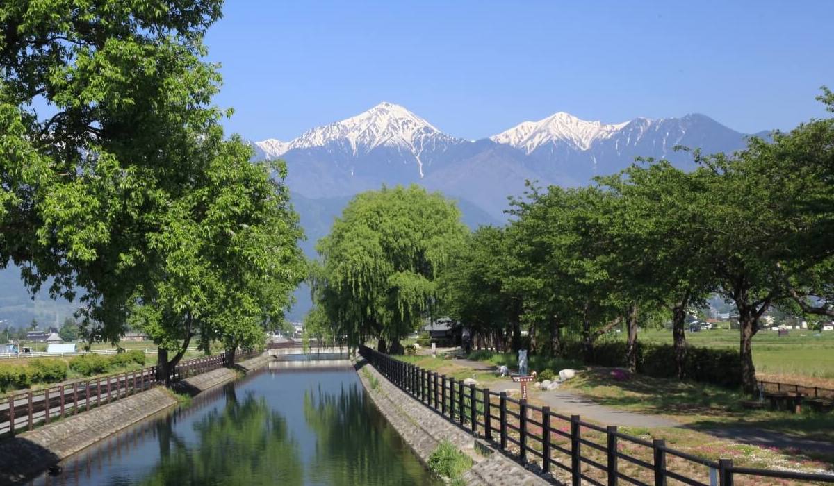 北アルプスを望む広々とした田園、どこまでも澄んだ水が流れる小川、季節ごとに表情を変える里山の風景。